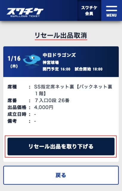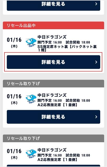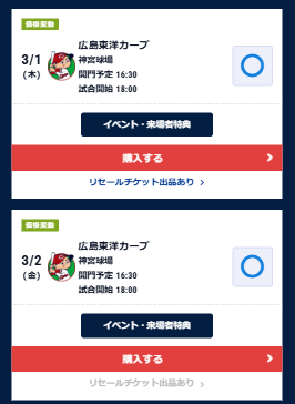 試合日前日の23:59まで、いつでもリセールに出品できます。
