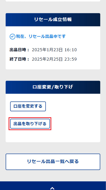 リセールに出品したチケットは、購入履歴にて確認できます。