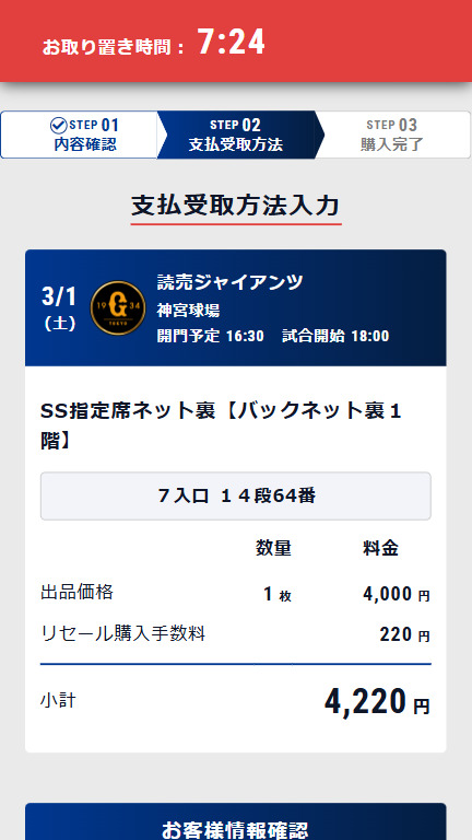 - リセール購入手数料:チケット1枚につき220円(税込)