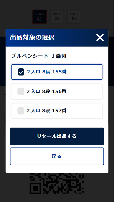 (例)4月30日(水)横浜DeNA戦のQRチケットを出品するケース