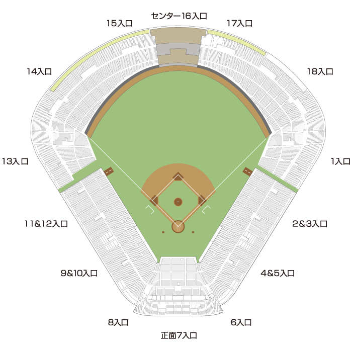 試合によっては、レフト側の一部がホーム側となります