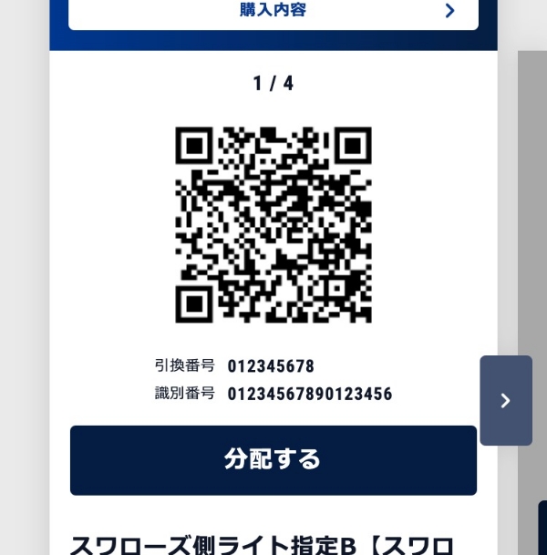 - 購入履歴のチケットにある「分配する」ボタンをクリック